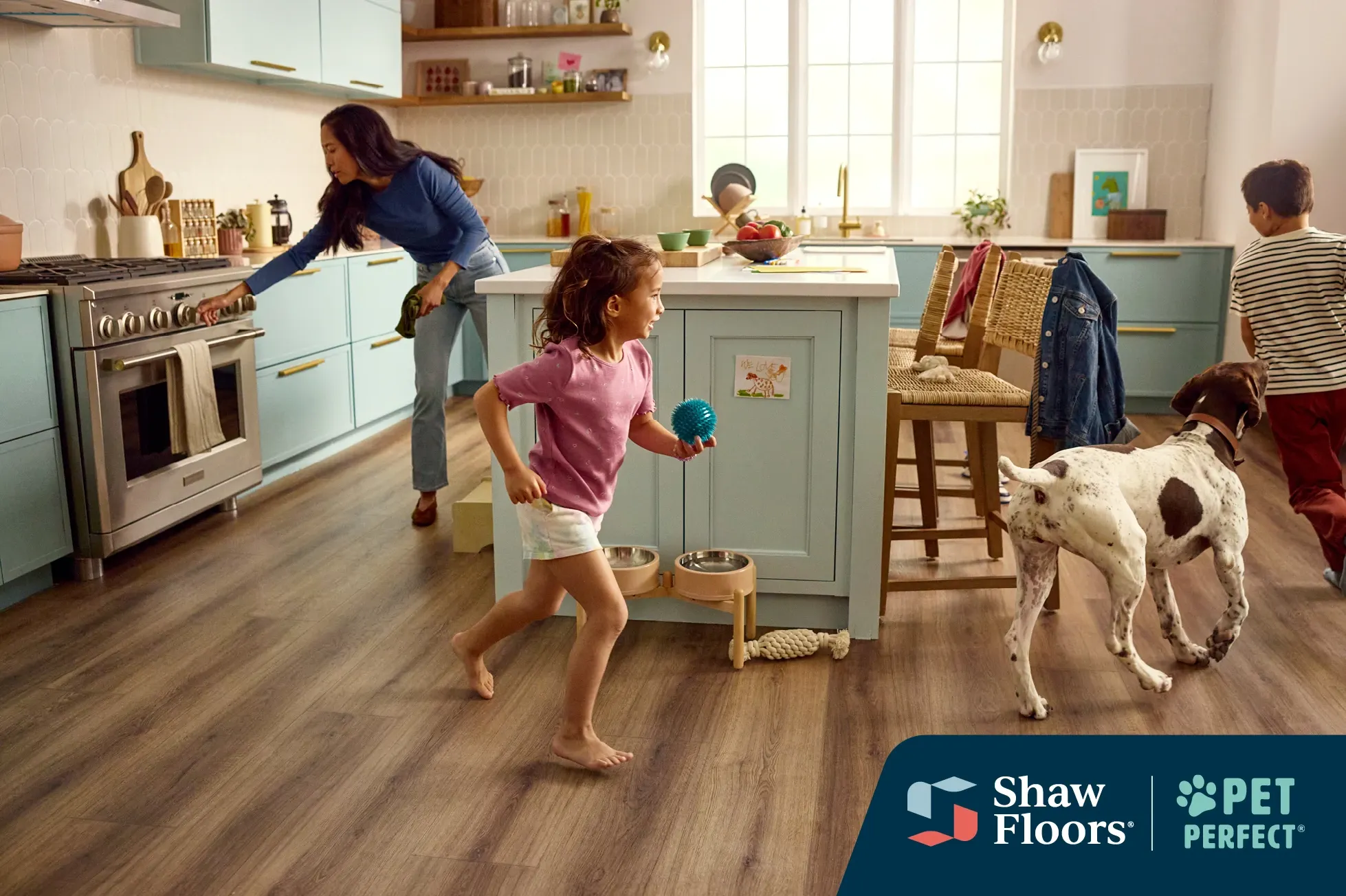 Available in carpet, luxury vinyl, and laminate, Pet Perfect is Shaw Floors' most pet-friendly flooring collection specifically designed for life with pets.